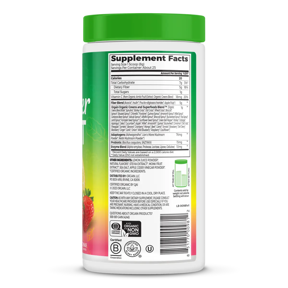 Each scoop includes 5g of fiber to help with digestion** to keep you full, 1 billion probiotics* for gut health, 50 organic superfoods, 25 organic greens, and adaptogenic herbs like Ashwagandha, Reishi, and Lion¡¯s Mane. That¡¯s five categories of wonderful ingredients to help you maintain a healthy gut**.??